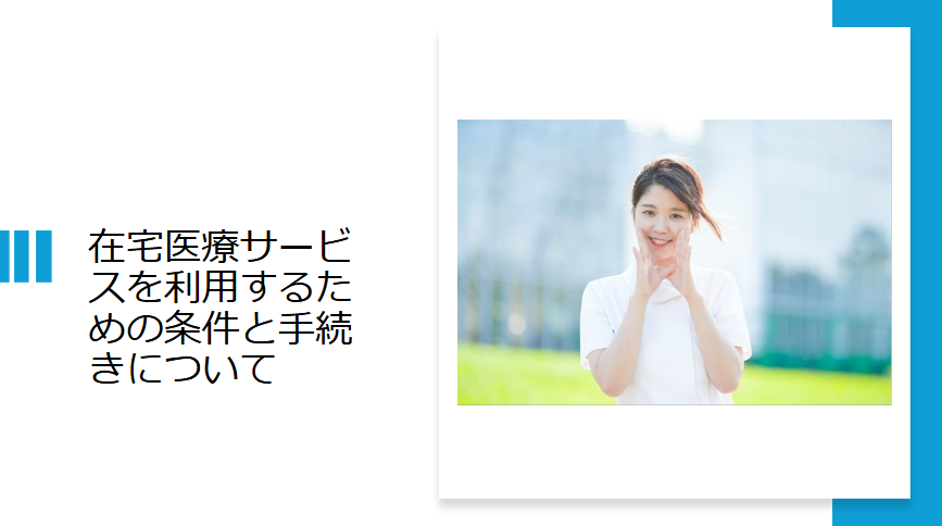 在宅医療サービスは、病院に通院せずに自宅で医療や看護を受けることができる便利なサービスです。しかし、誰もが利用できるわけではなく、利用にあたってはいくつかの条件や手続きが必要です。この記事では、在宅医療を利用するために知っておくべき条件や準備、利用までの流れについてわかりやすくご紹介します。